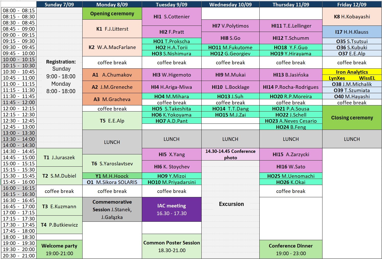 Keynote Lecture (K) – 45 min. Tutorial Lecture (T) – 45 min. Awarded Lecture (A) – 30 min. |