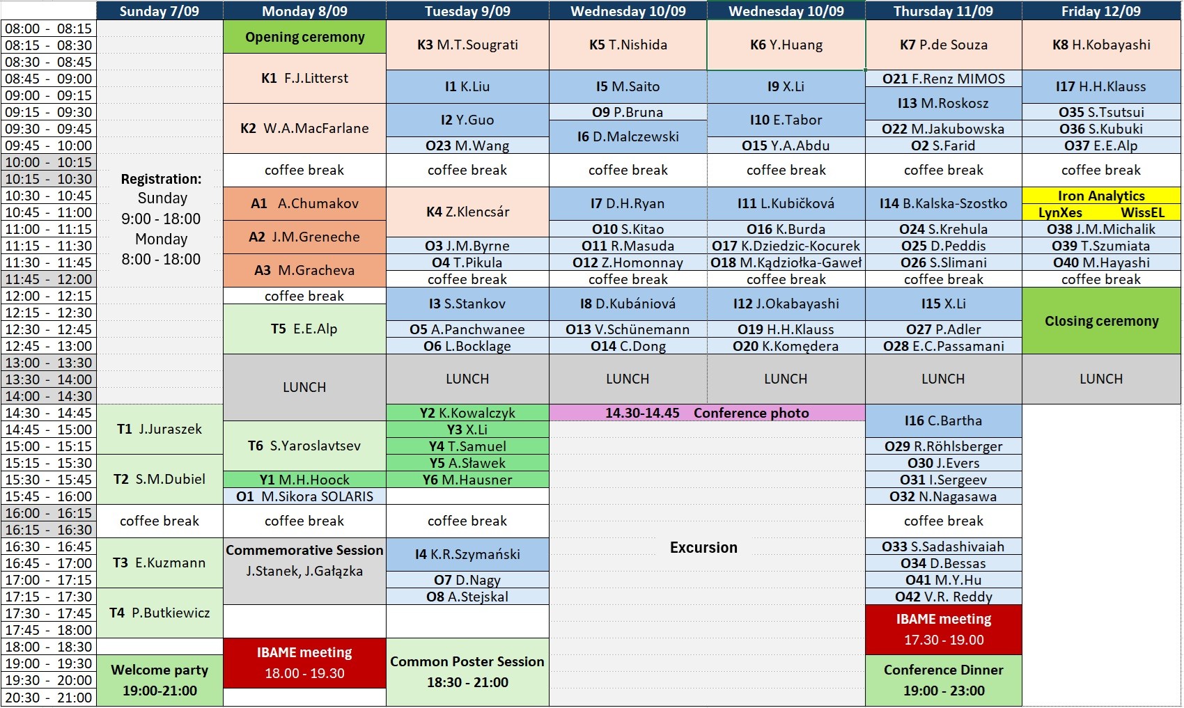 Invited Lecture ICAME (I) – 30 min. Oral Contribution ICAME (O) – 15 min. Young Contribution (Y) – 15 min. |